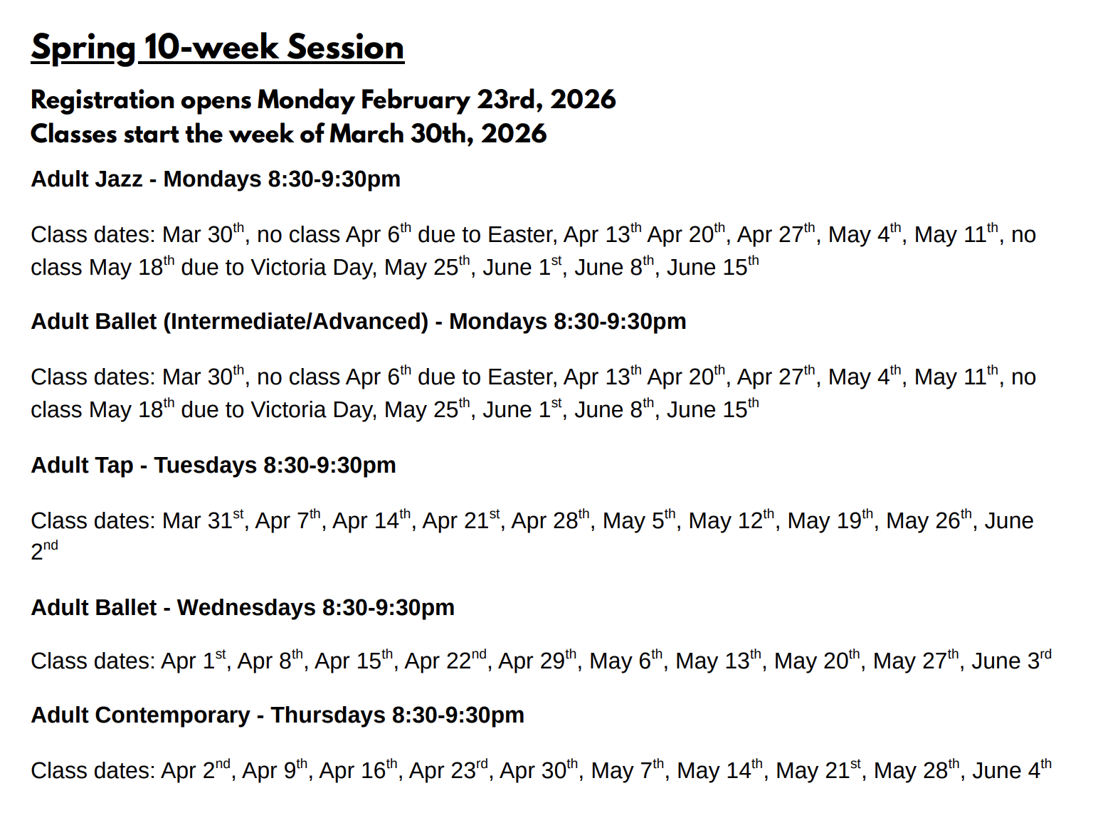 Winter Session begins the week of Jan 5th 2026